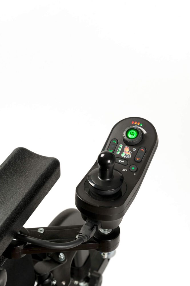 Uchwyt dżojstika również posiada oryginalne rozwiązanie konstrukcyjne i umożliwia odchylanie na zewnątrz i do wewnątrz podłokietnika oraz zapamiętywanie wcześniej ustawionej pozycji neutralnej.