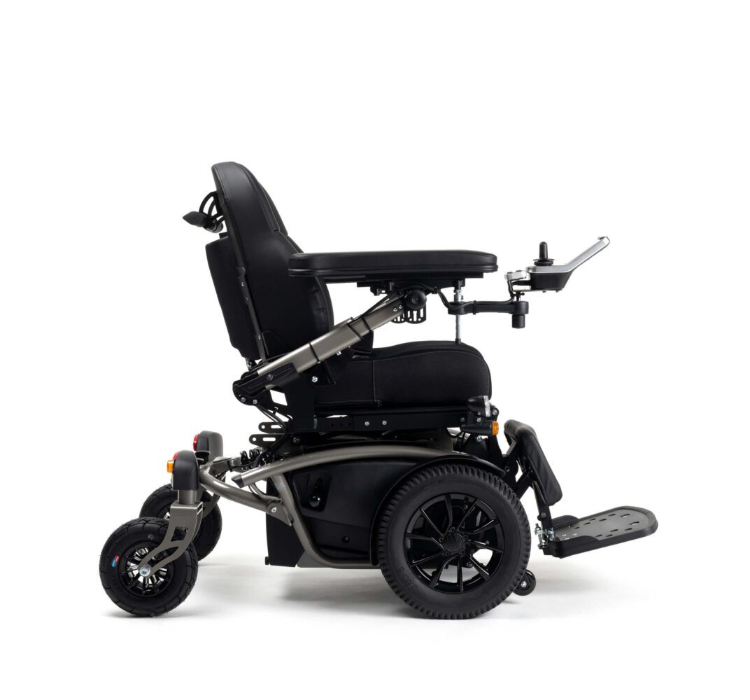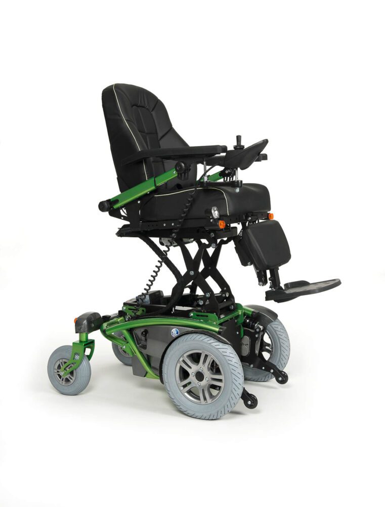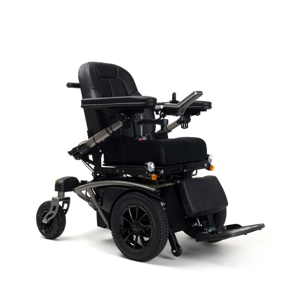 Komfort , technologia , jakość, wytrzymałość .Terenowy wózek z napędem elektrycznym. Aktywne zawieszenie i wahacz zwiększają wydajność. Konstrukcja wózka umożliwia dopasowanie do indywidualnych potrzeb. Napęd na przednie koła pozwala łatwiej i bezpieczniej poruszać się w terenie nawet nieprzyjaznym. Tego typu napęd jest również korzystniejszy podczas poruszania się w pomieszczeniach i wąskich korytarzach, wózek sprawniej wykonuje wszelkie manewry skrętu oraz obraca się w osi.
