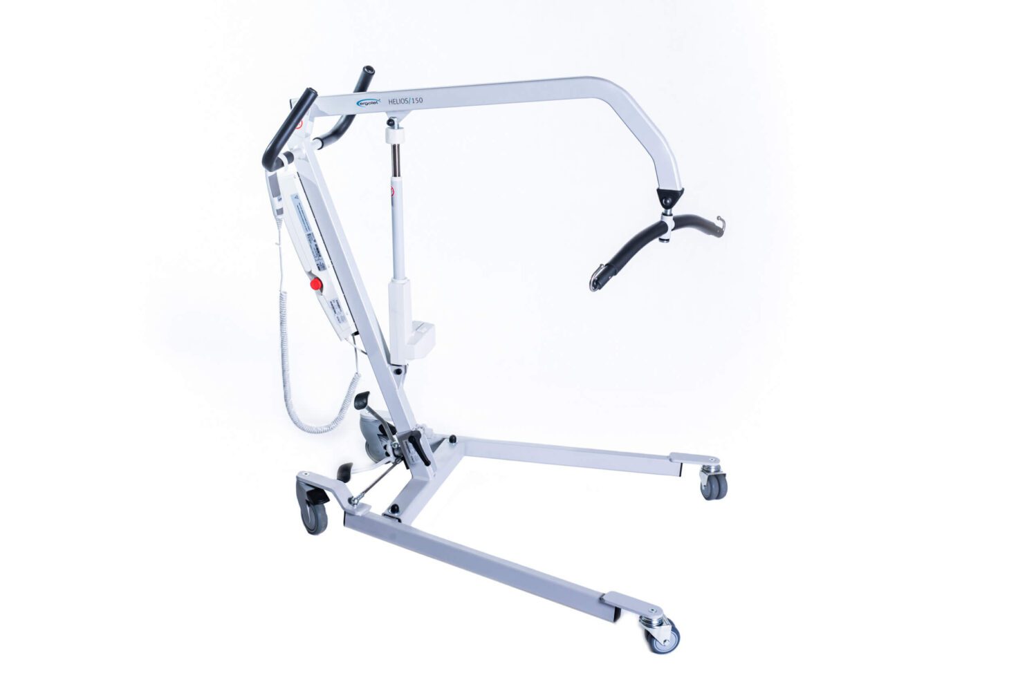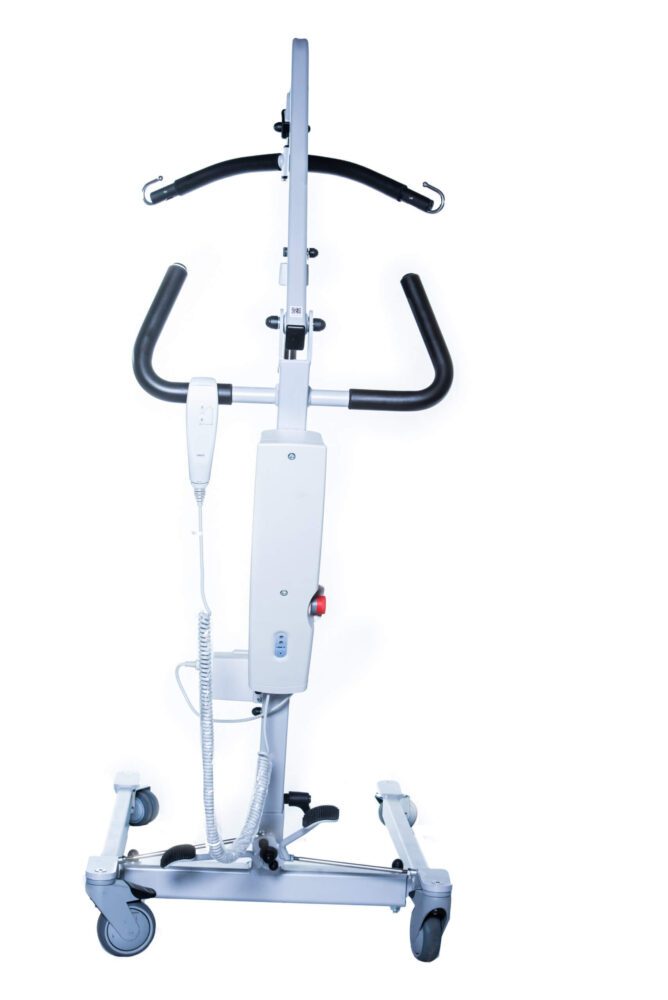 Środek ciężkości pacjenta znajduje się powyżej kół o niskim tarciu, zapewniając większą ergonomię, wygodę użytkowania, a także maksymalne bezpieczeństwo podnoszonego pacjenta. Podnośnik ten posiada pojemny akumulator zapewniający dużą liczbę podnoszeń.